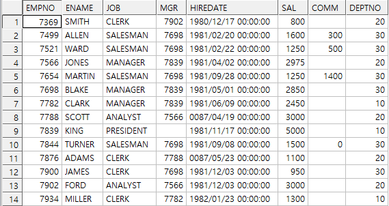SELECT * FROM SCOTT.EMP;