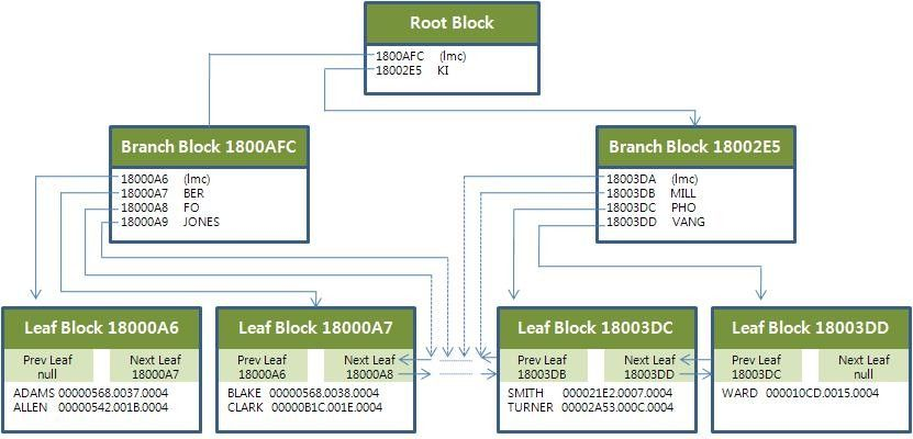 - 하위 노드 블록을 찾아가기 위한 Data Block Address를 갖는다.