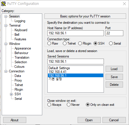 PuTTY 나 Orange에서 접속하려 할 때는 포워딩 된 호스트 IP와 호스트 포트로 연결해주면 된다