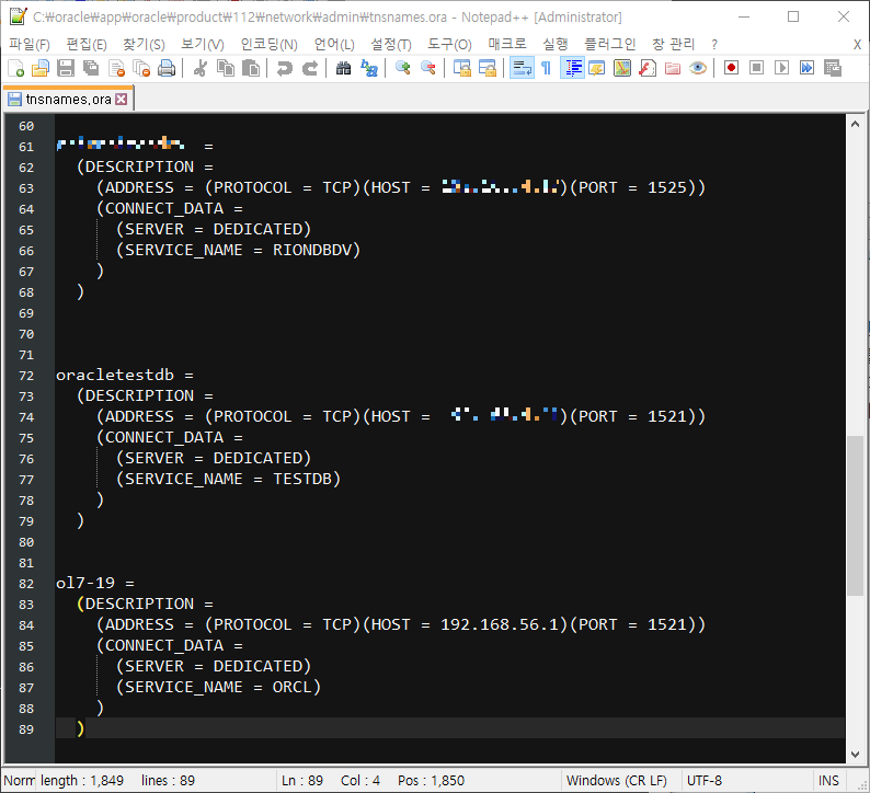 server의 ${ORACLE_HOME}network/admin/tnsname.ora