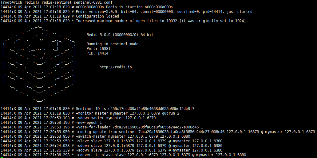 redis-sentinel sentinel-6381.conf