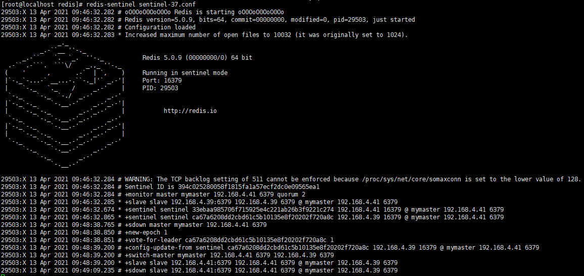 sentinel 1 – 192.168.4.37:16379, sentinel 2 - 192.168.4.37:16379,