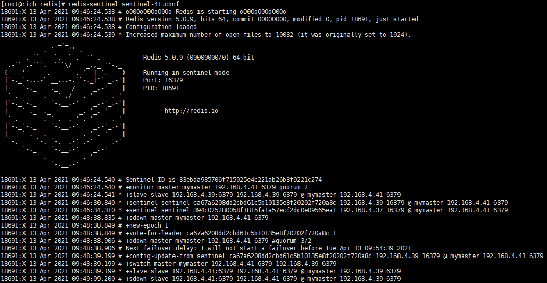 redis-sentinel sentinel-6379.conf