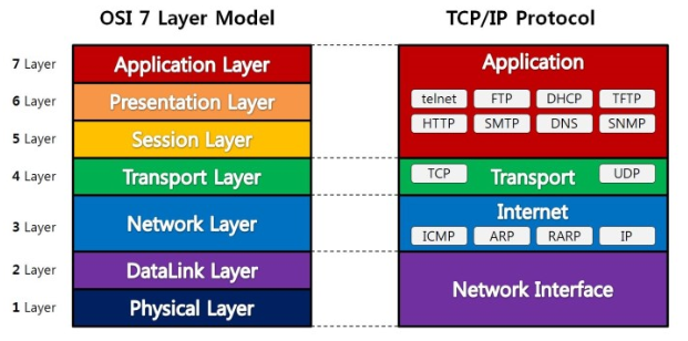 OSI 7 layer model에서 telnet은 application layer에 해당하고, ICMP 패킷을 보내는 ping은 network layer에 해당한다.